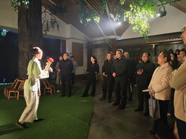 调研组一行先后观看曹操运兵道景区沉浸式演艺《消失的曹操》和百草园《一代神医》沉浸式剧目,实地了解业态建设及运营情况。